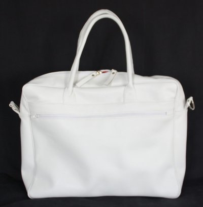 Witte laptoptas van rundleer voorzien van voor �n achtervak, roodgevoerd en diverse opbergvakjes