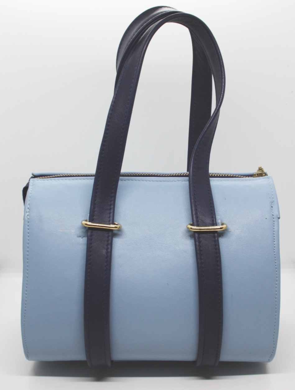 Rundleren tas, rondgezet. In diverse kleuren verkrijgbaar. Tas sluit met een rits, voorzien van handvatten en een schouderband. De tas is met katoen gevoerd en heeft binnenin een ritsvak.