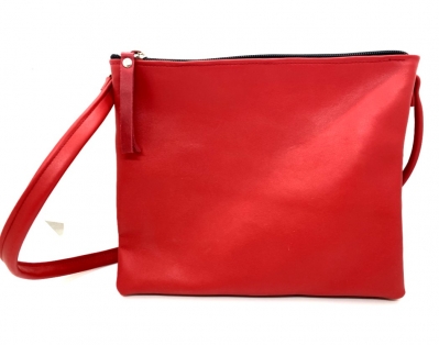 Rundleren enveloppe tas van 23 cm bij 19 cm in twee iets van elkaar verschillende kleuren. Elke tas heeft een binnenvak en wordt gesloten met een rits. De twee tassen zitten aan elkaar vast, waardoor een tussenvak ontstaat voor bijvoorbeeld sleutels of telefoon. De tas heeft een schouderband en is verkrijgbaar in diverse kleuren.